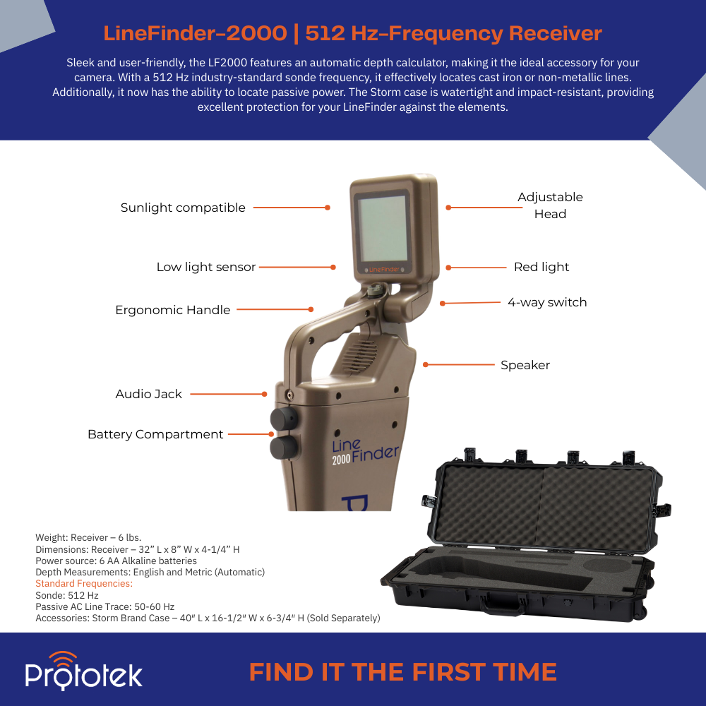The LF 2000 is our original digital locator. If you are only locating in cast iron and nonmetallic lines with the 512 Hz frequency then this is your receiver.